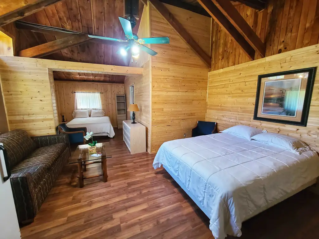“NOTE: Not all cabins have a pull out bed/futon. Please inquire at time of booking.”